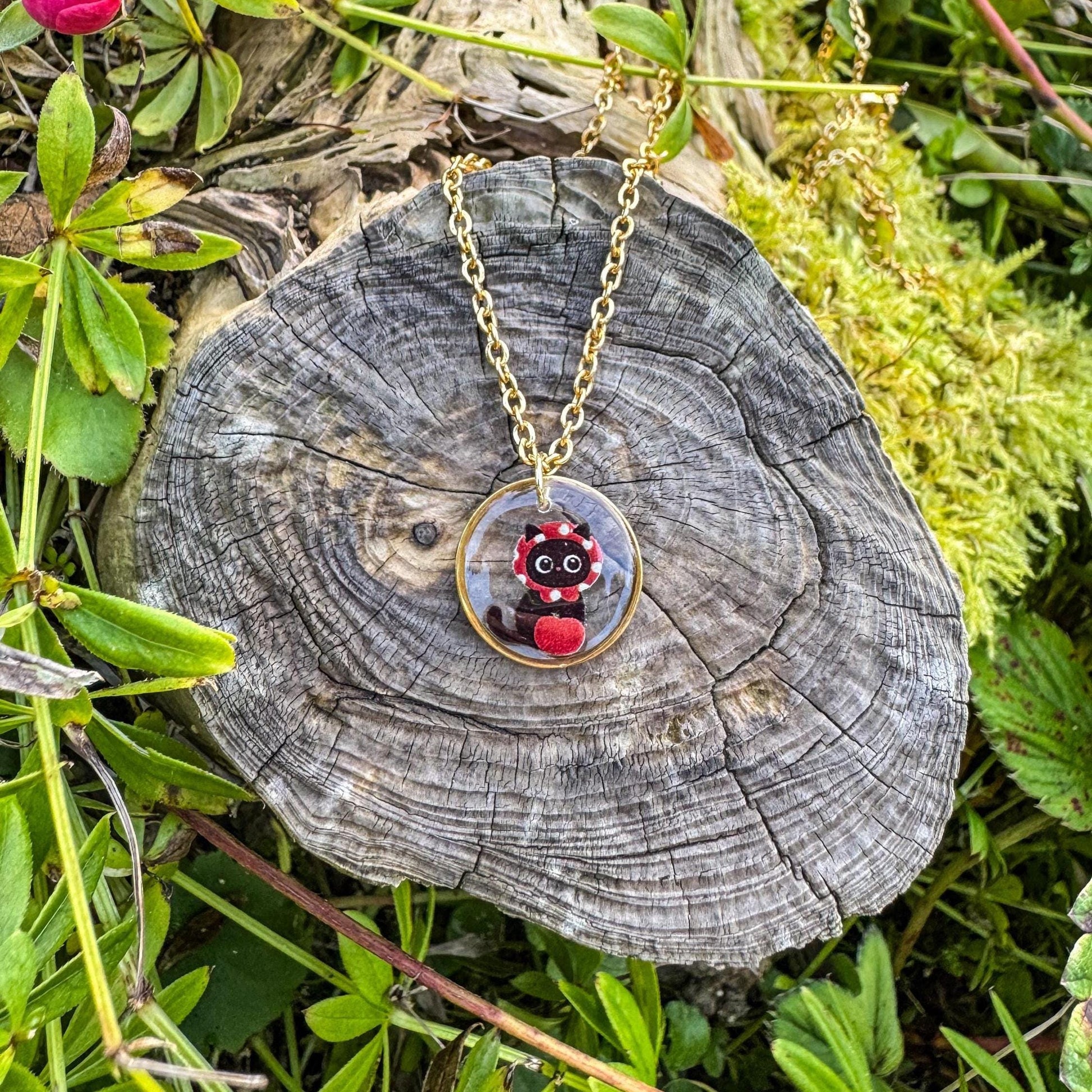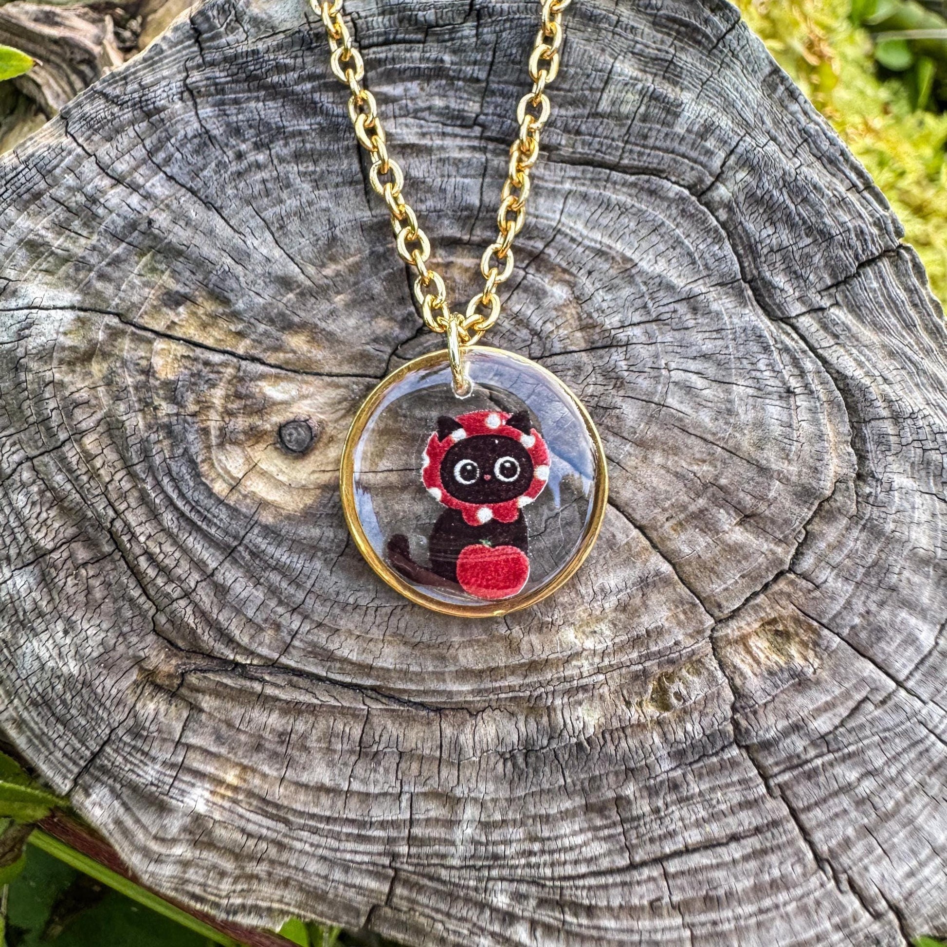 Katzen-Rotkäppchen-Anhänger - Handgemachtes Schmuckstück mit Rotkäppchen-Katze 🍎🐱