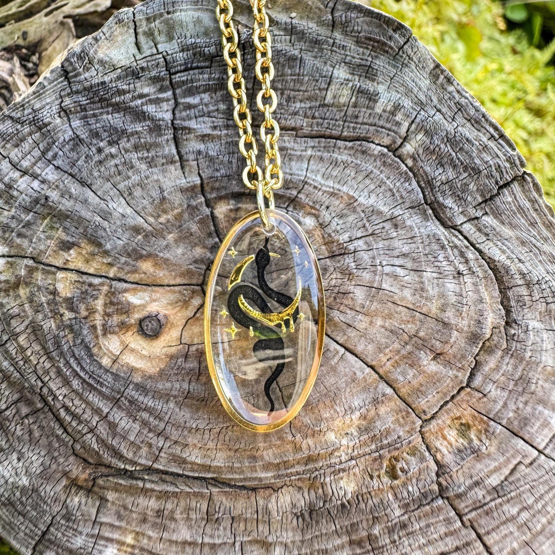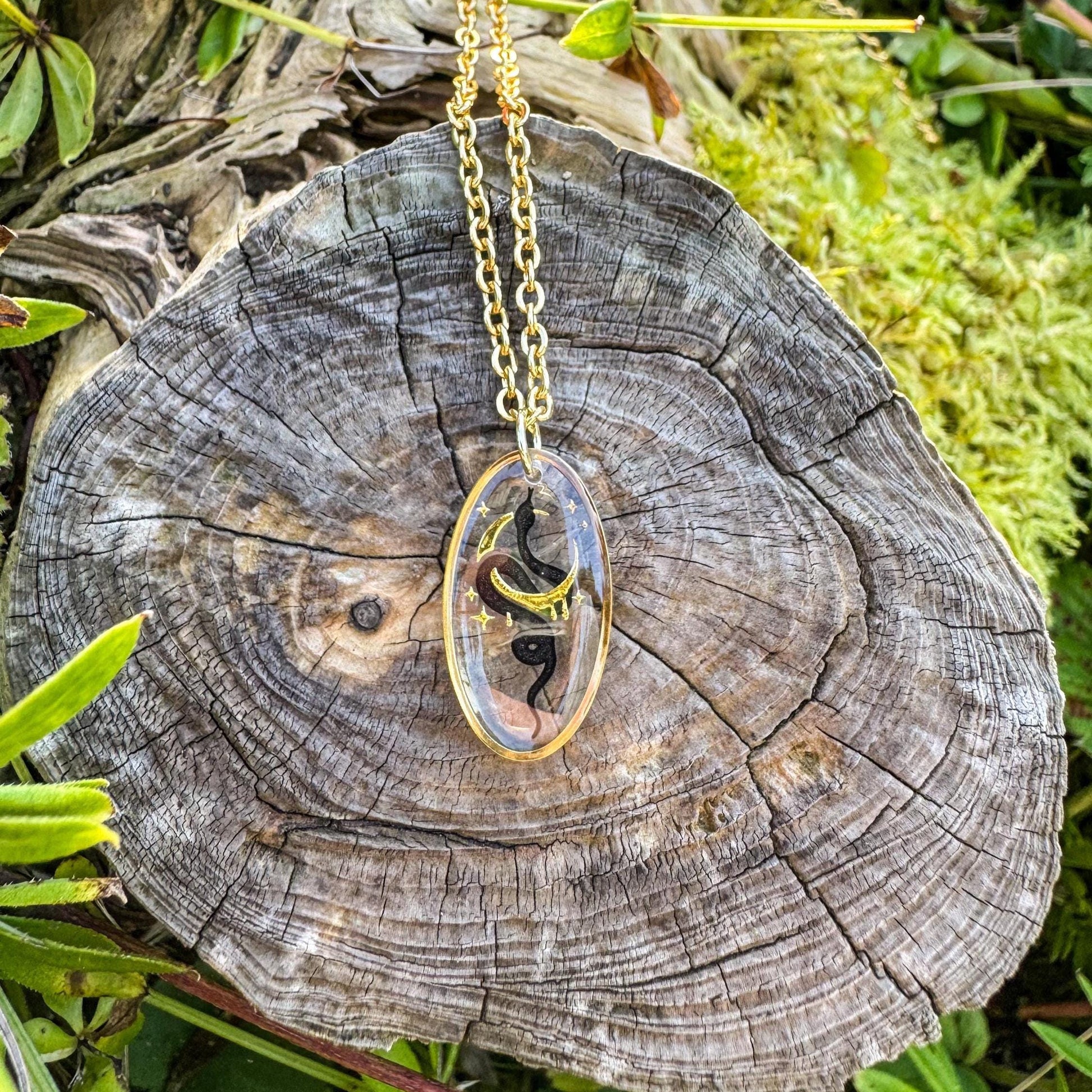 Schlangen-Sichelmond-Anhänger - Handgemachtes Schmuckstück mit Schlange und Sichelmond 🐍🌙