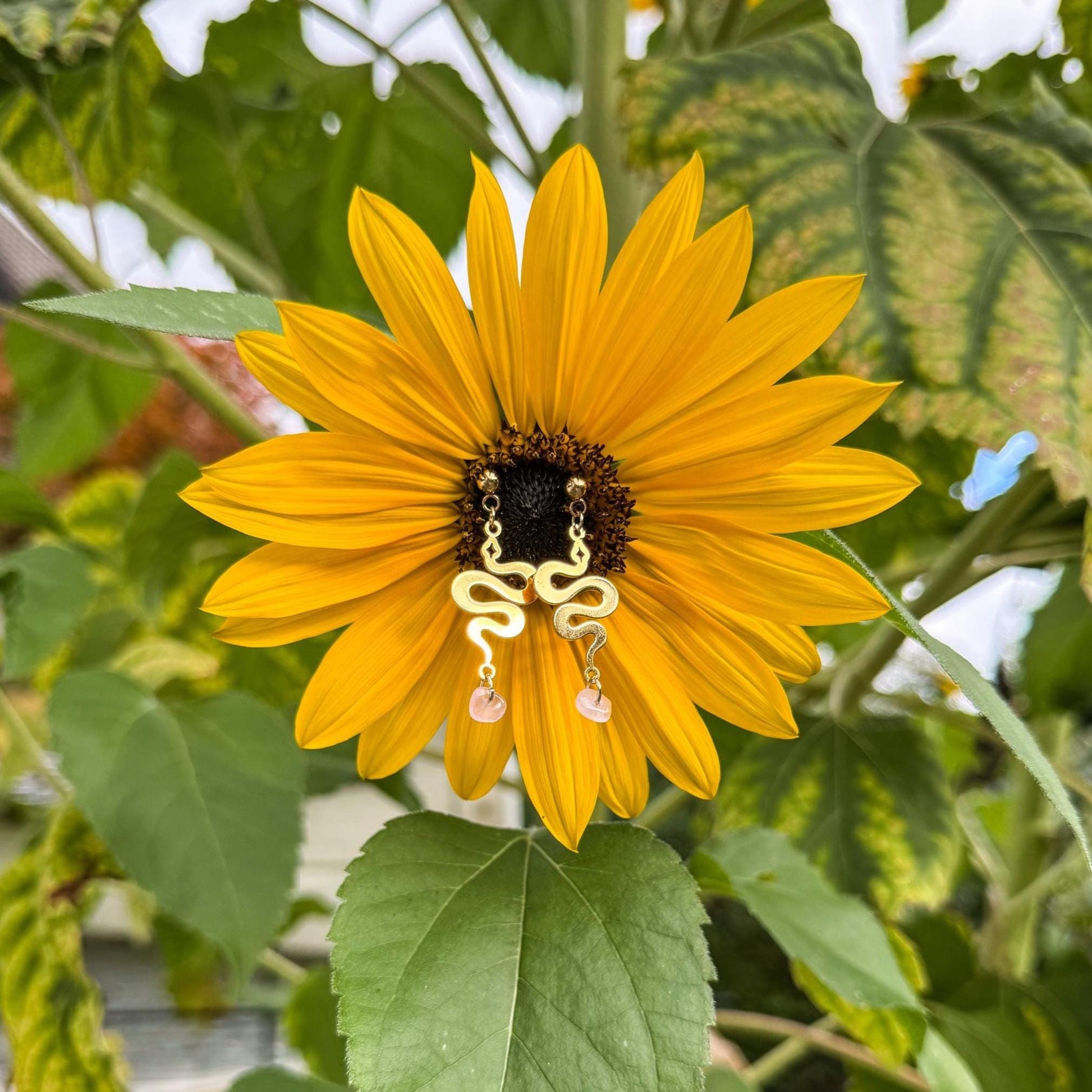 Magische Schlangen-Ohrringe mit Rosenquarz - Bezauberndes Schmuckstück mit goldener Schlange 🐍🩷