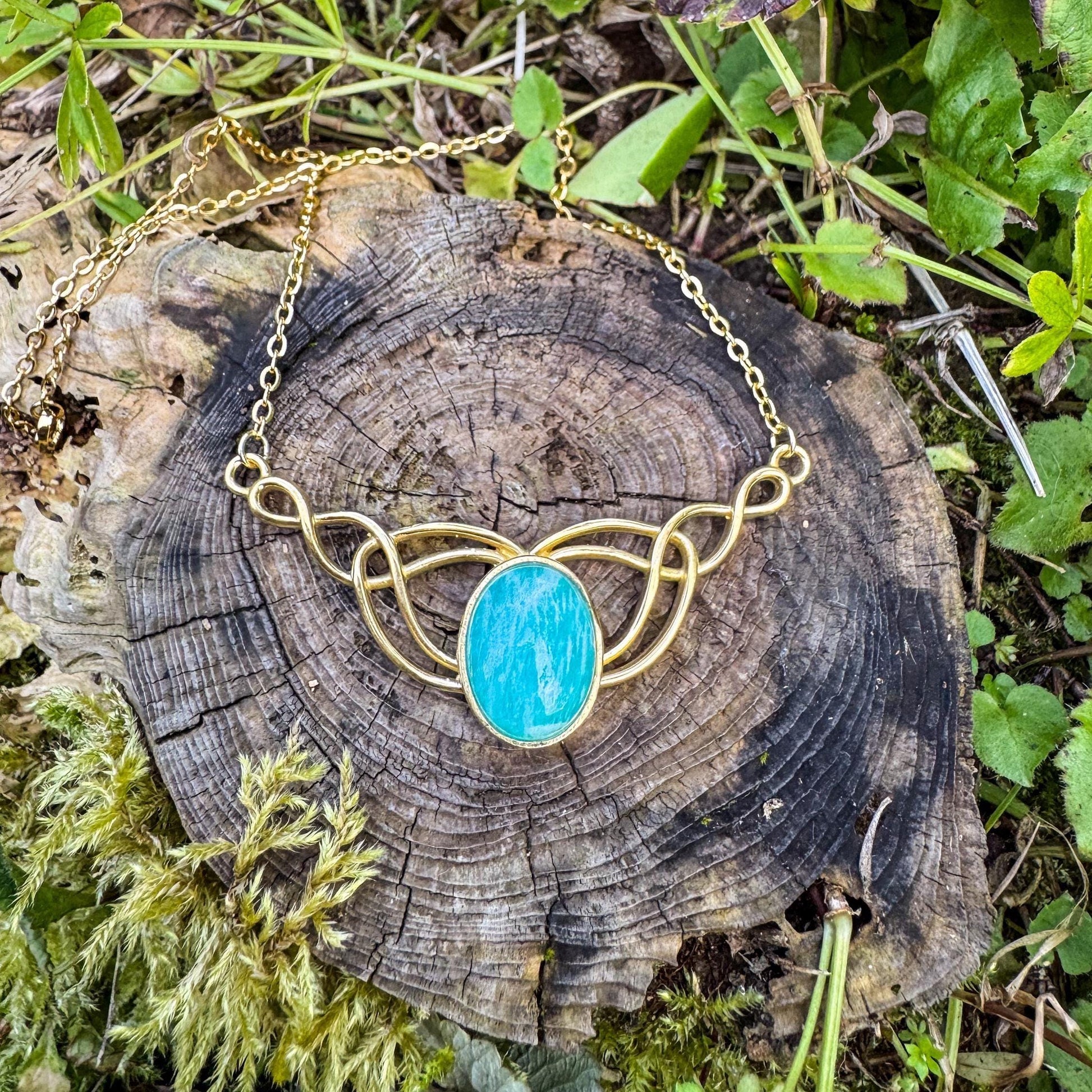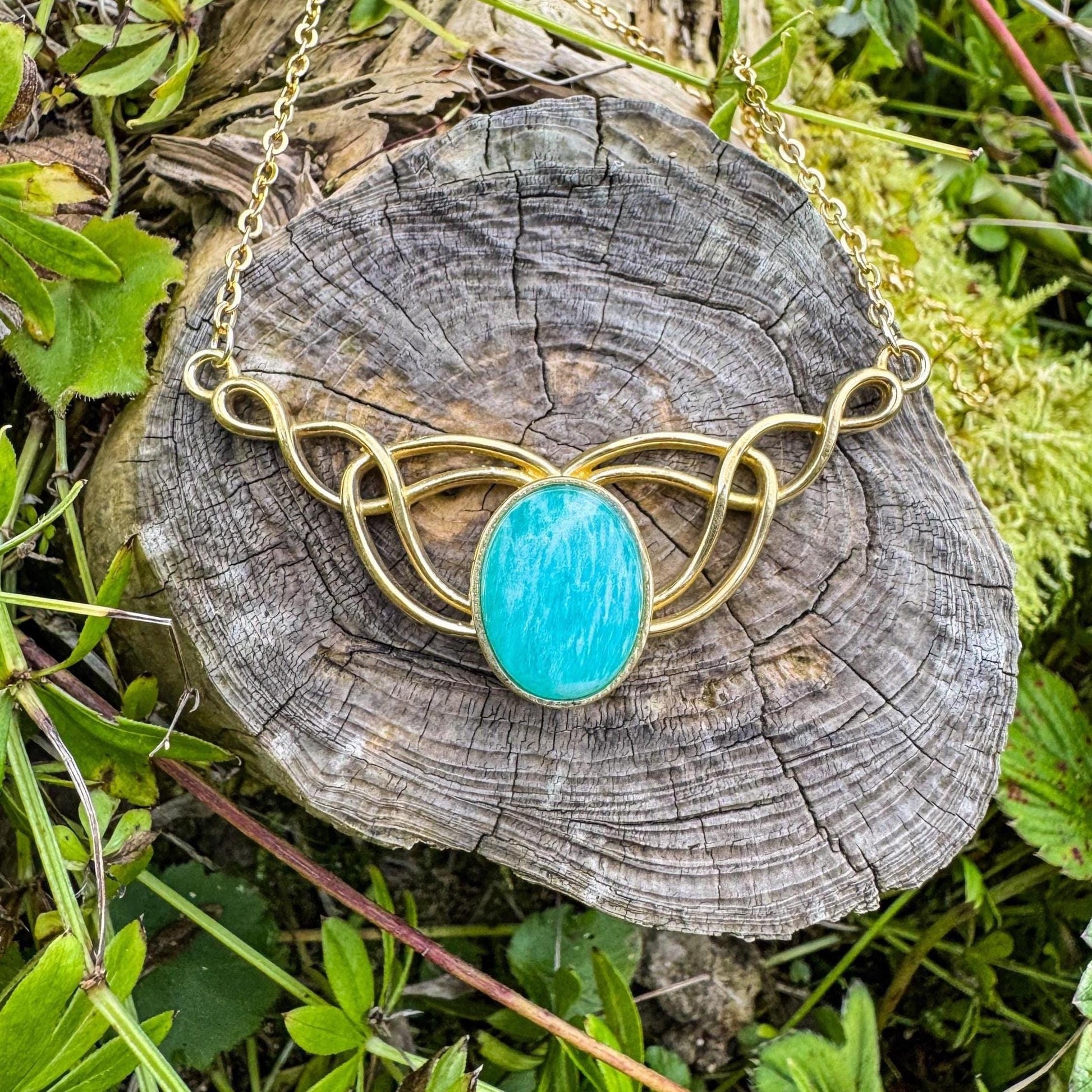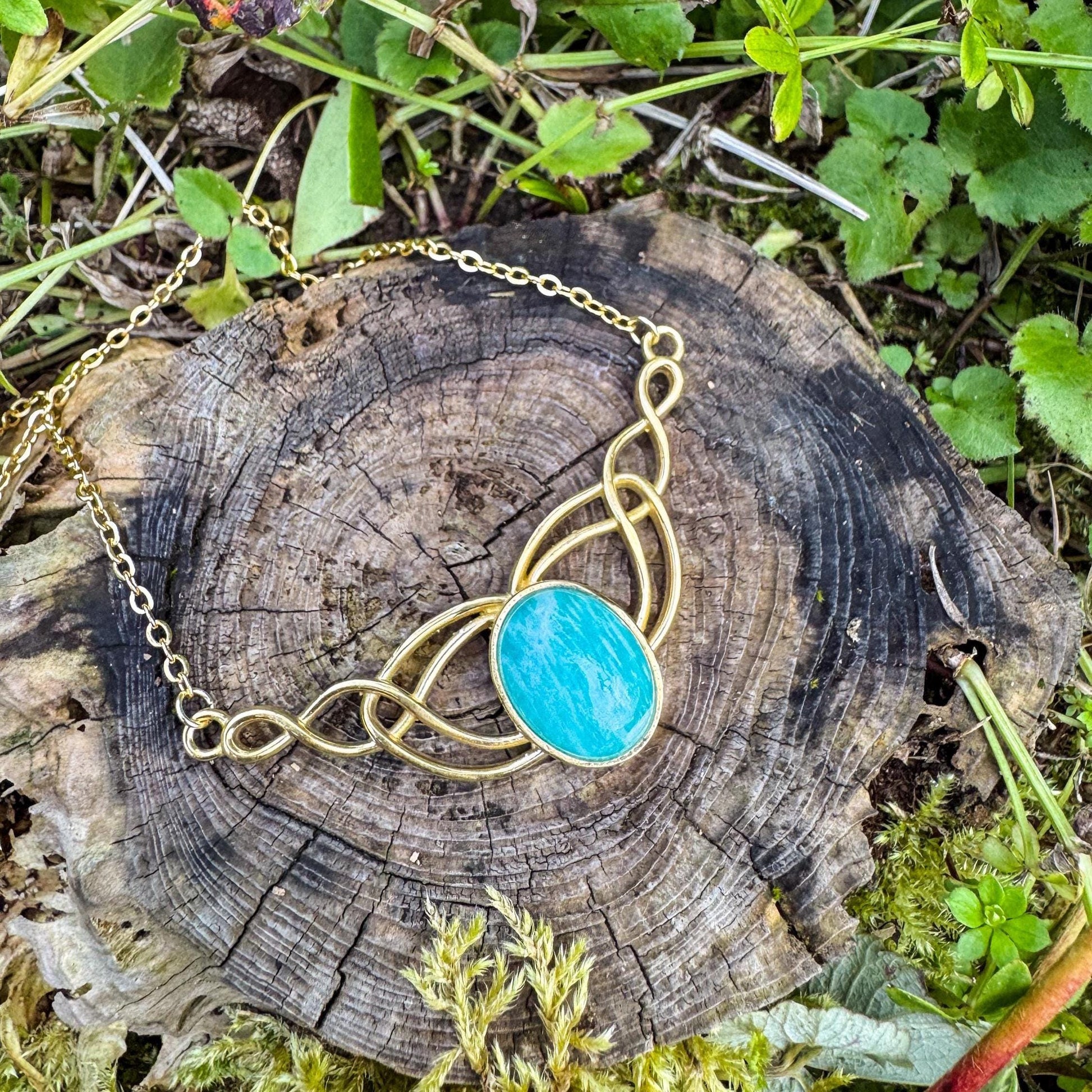 Diese magische Halskette ist mit ihrem auffälligen Edelstein-Anhänger mit natürlichem Amazonit ein echter Hingucker!